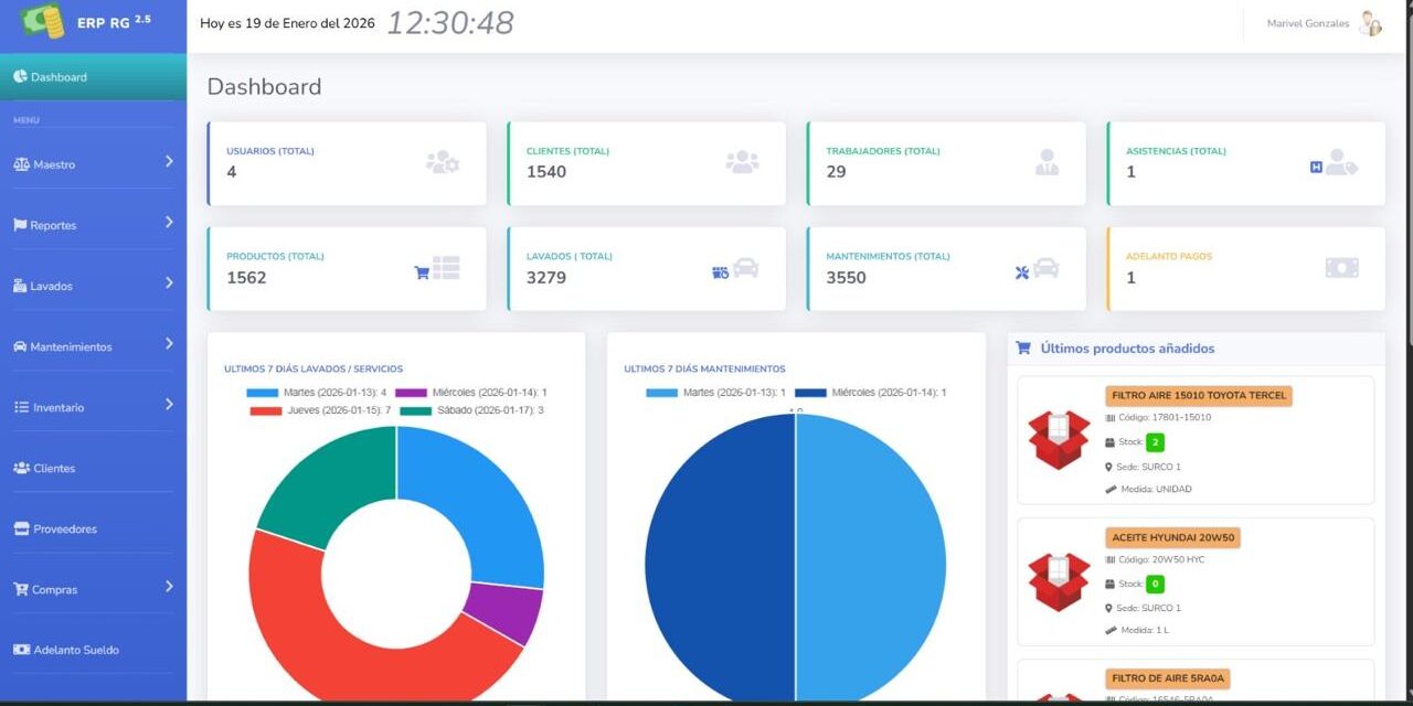 Sistema ERP RG MOTORS de Gestión Integral Automotriz