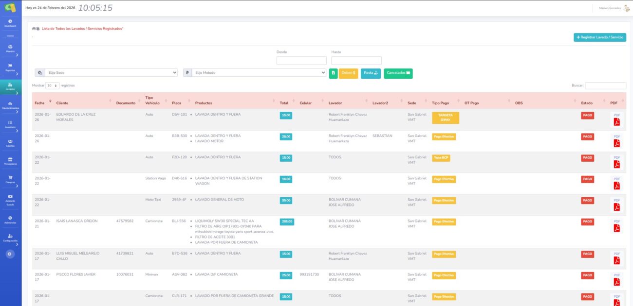 Nuestro Sistema ERP CARSOFT de Gestión Integral es una solución tecnológica diseñada para automatizar, optimizar y controlar todos los procesos operativos y administrativos de negocios del sector automotriz, como lavaderos, talleres y centros de mantenimiento.
